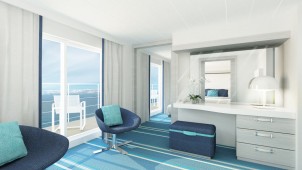 Sailing under the French flag, this magnificent yacht of only 122 staterooms and Suites, with balconies, joined the fleet in April 2015. You will be enchanted by the contemporary decor inspired by the destinations and the blue light of the Vega star in the Lyra constellation. The result is a subtle variation around a palette of blues, ranging from the luminous delicate grey-blue of the Polar ice to splashes of the vivid turquoise blue found in Mediterranean coves